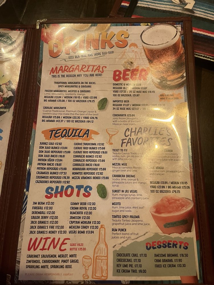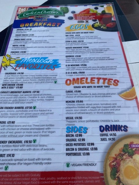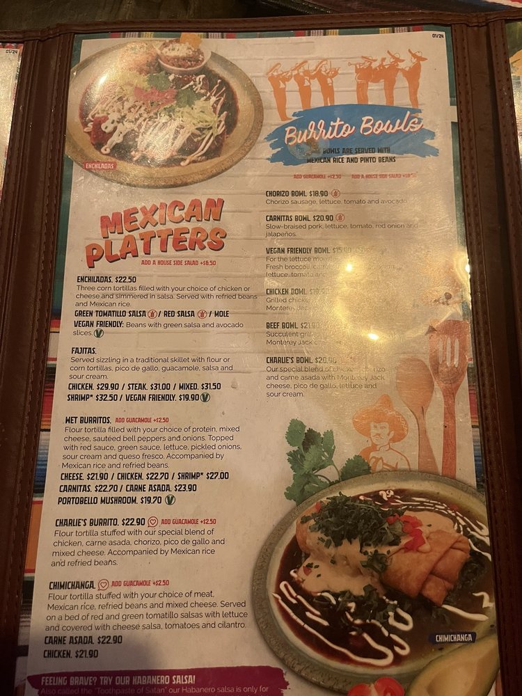 Carlos ‘n Charlie’s Restaurant Menu